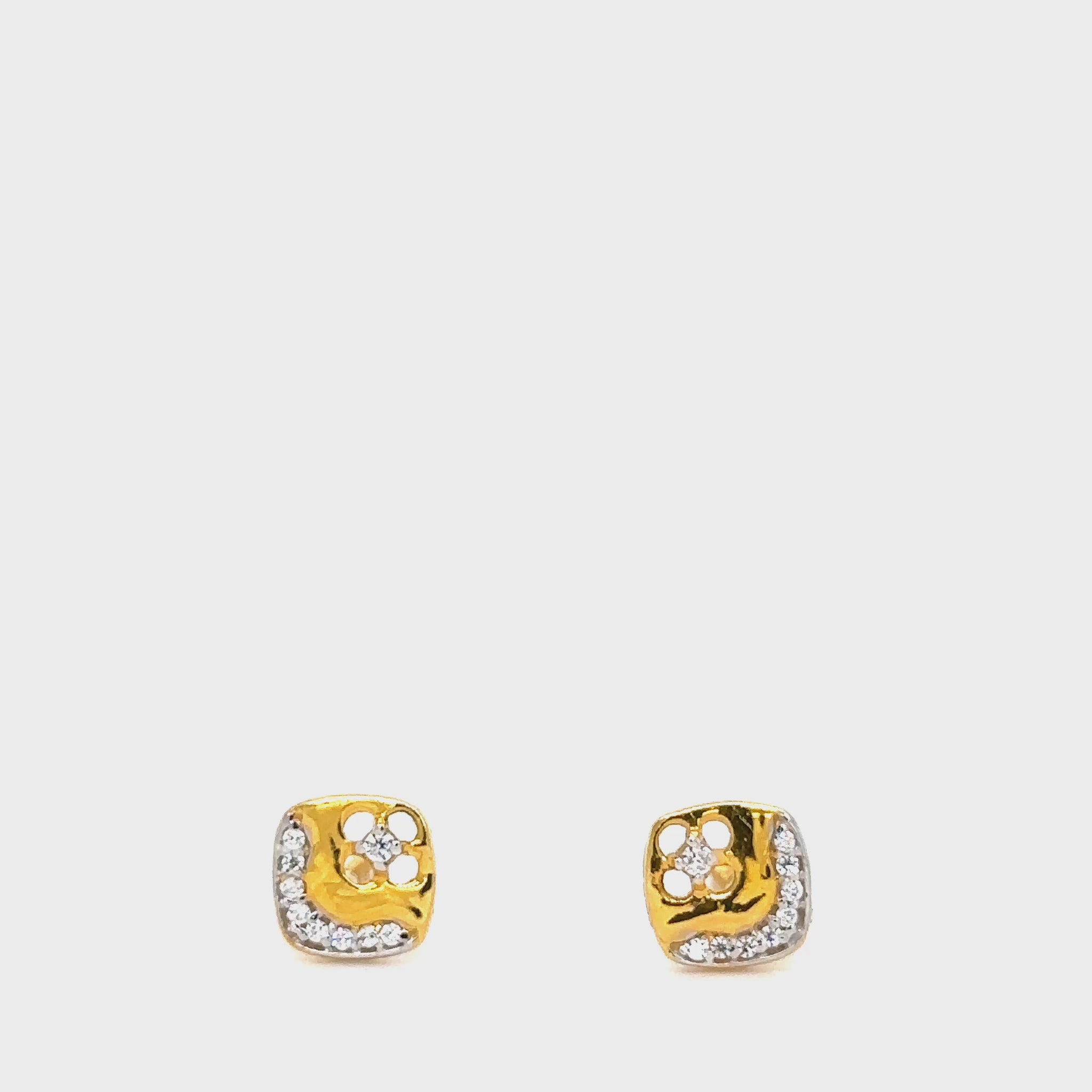 Contemporary 22kt gold studs in a sleek square design, highlighted with sparkling white stones—ideal for everyday elegance with a modern twist.