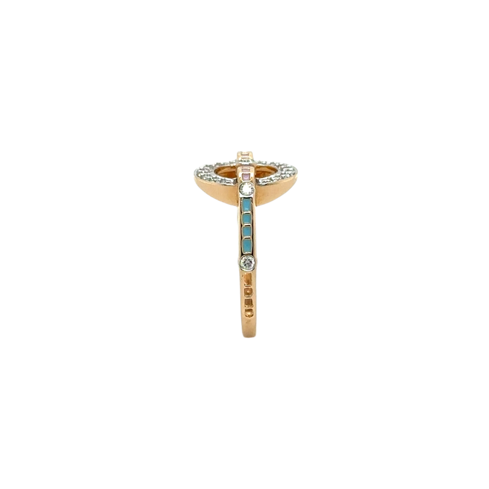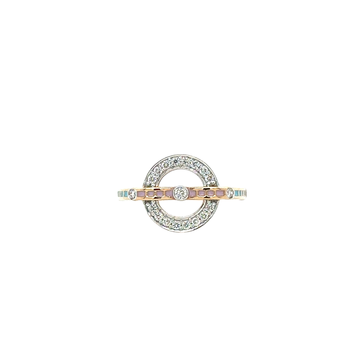 Exquisite gold ring featuring a circular diamond-studded design with a modern geometric twist. A perfect blend of elegance and contemporary style, ideal for making a sophisticated statement on any occasion.
